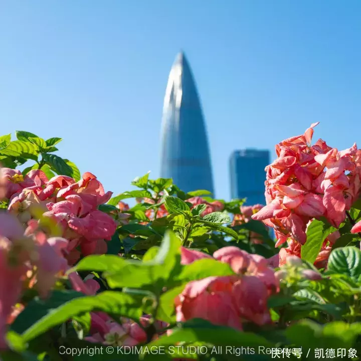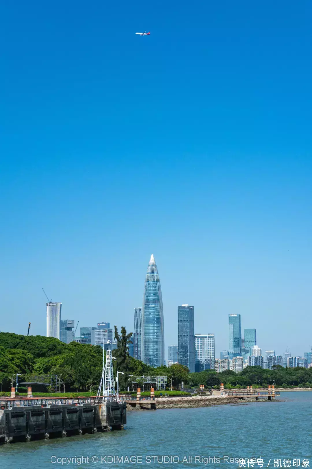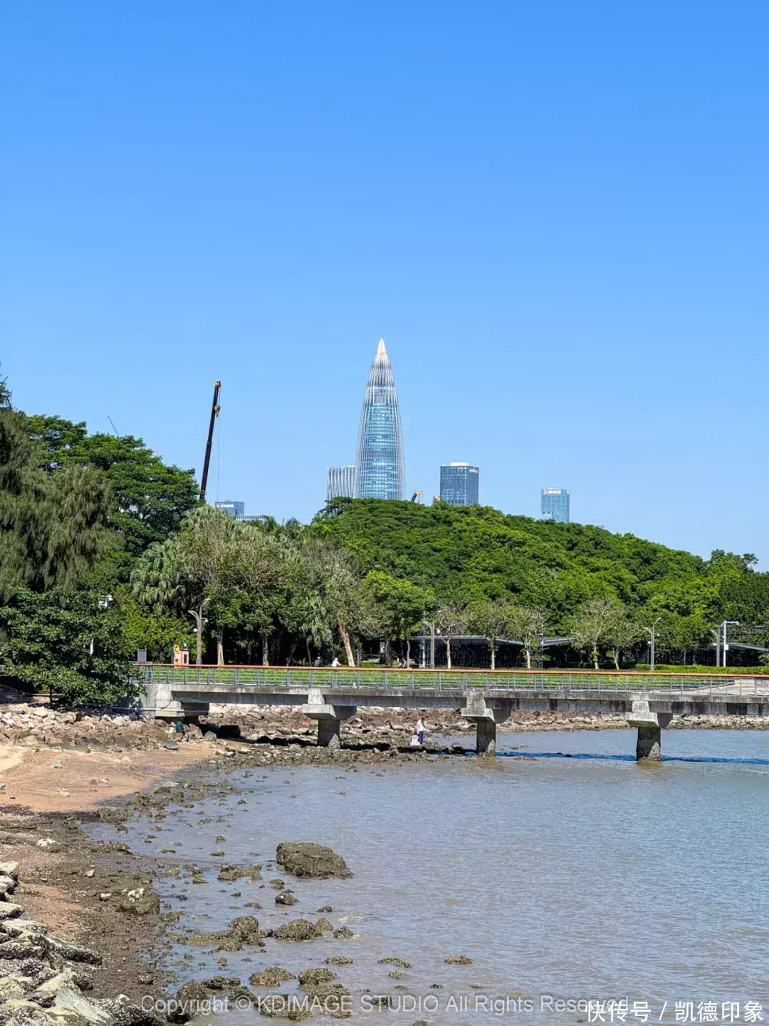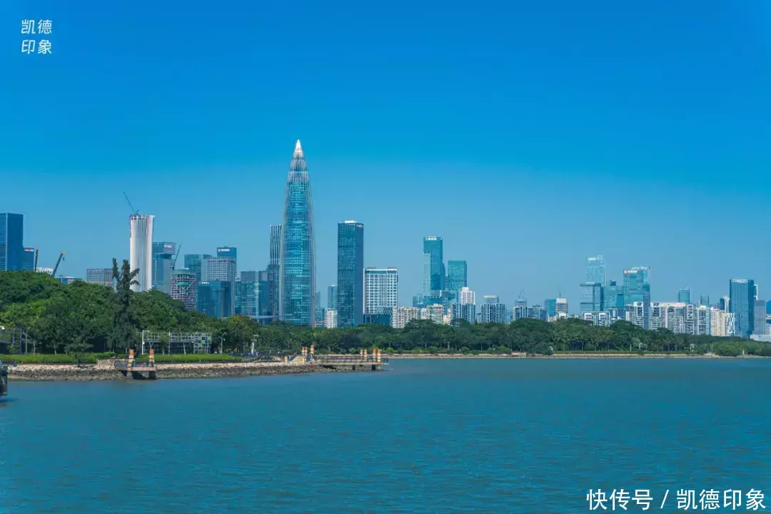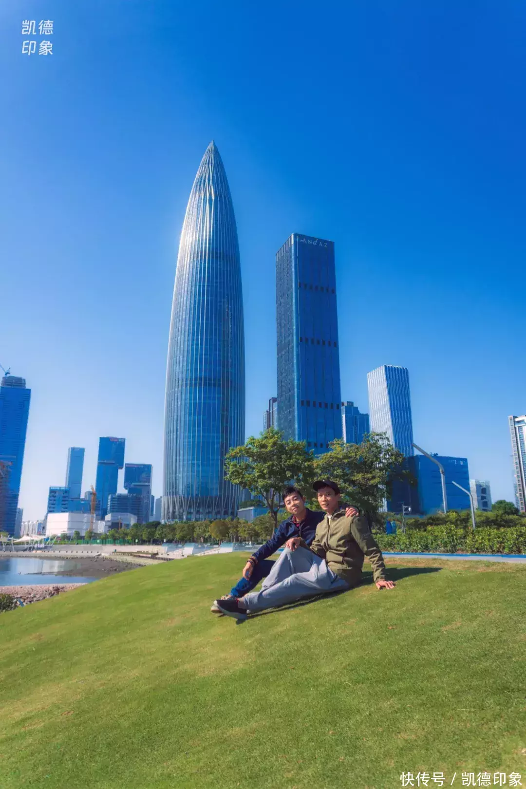 沿着海边方向走,回头就可以打卡深圳地标“春笋”。内海海面倒映出建筑群,高楼与海景结合,自由又现代。如果是周末或者节假日晚上过来的话,还能遇到灯光秀和无人机表演。