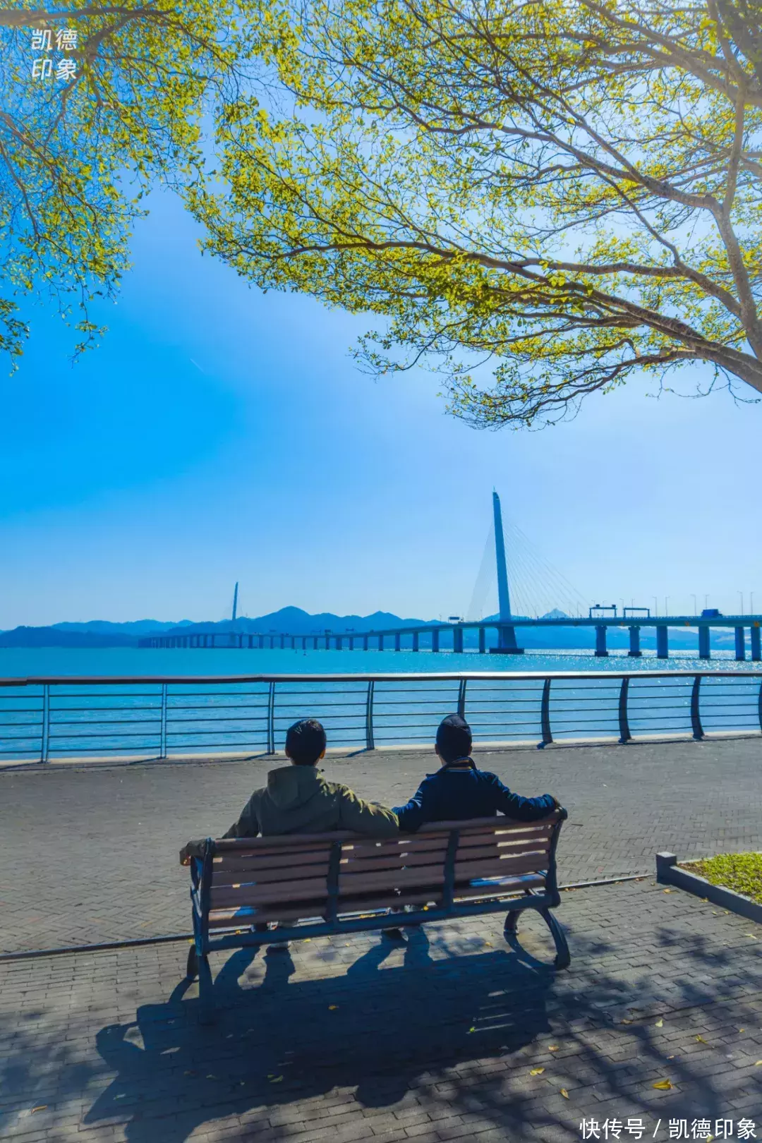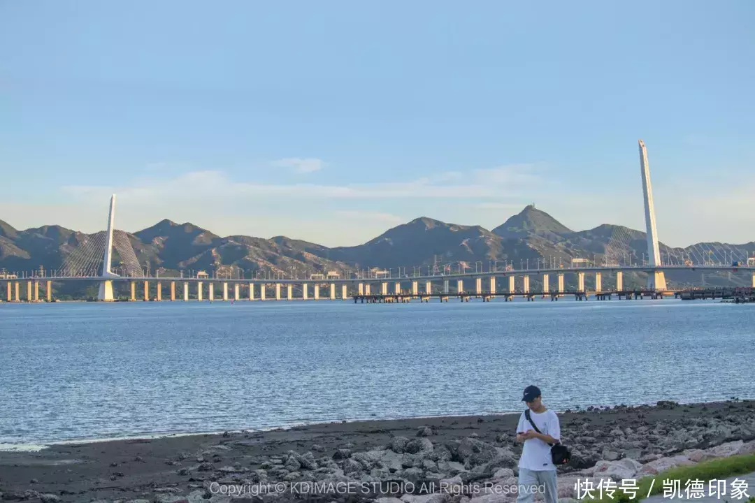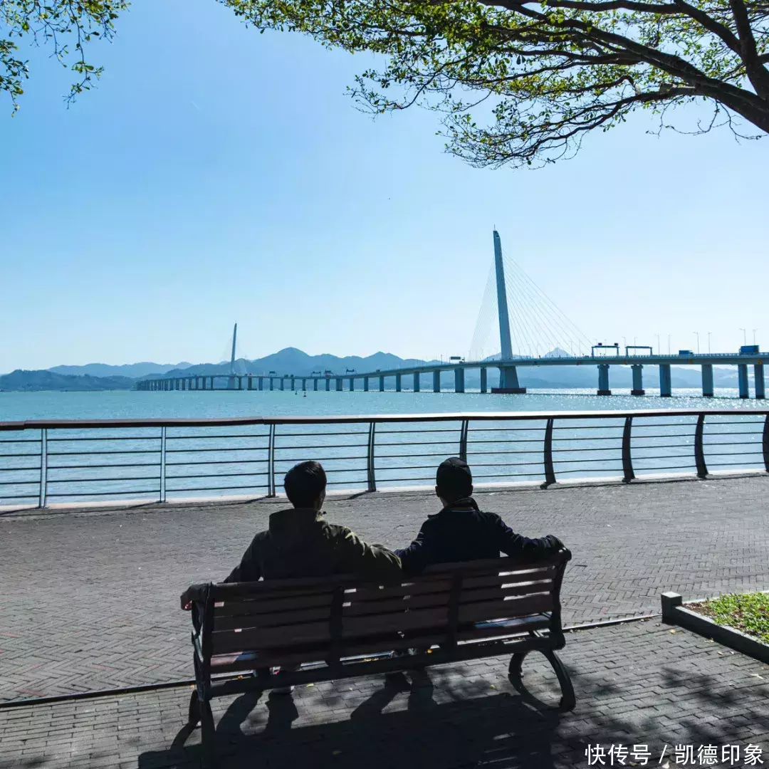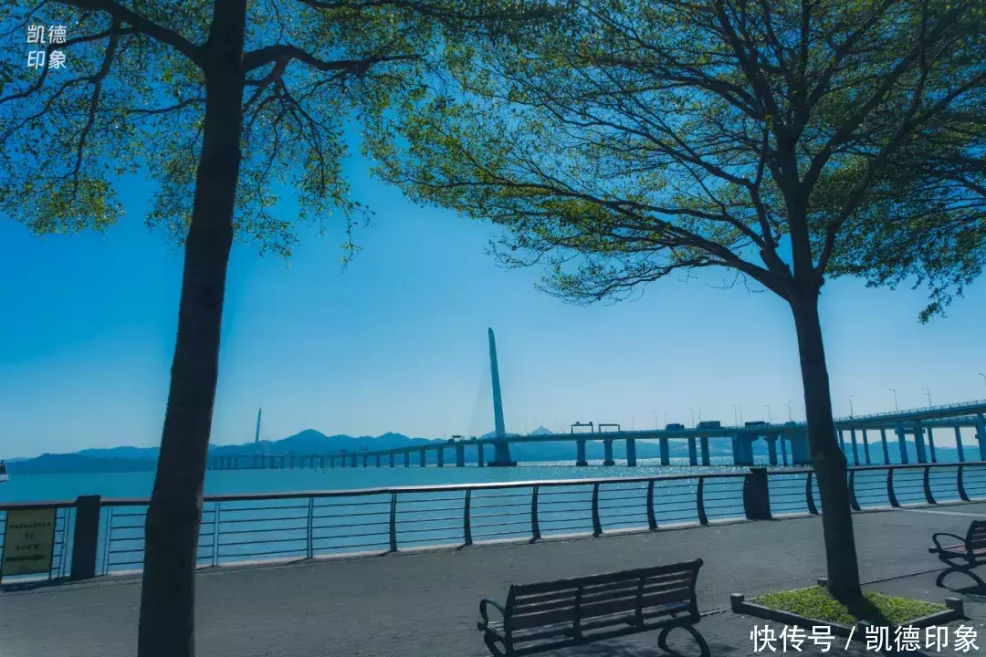 从日出剧场,沿着海边继续往蛇口方向前行,便来到视野超绝的【观桥公园】。观桥公园是离深圳湾大桥最近最出片的地方,观光视野绝佳,坐旁边针树林的长椅下吹海风,很放松。