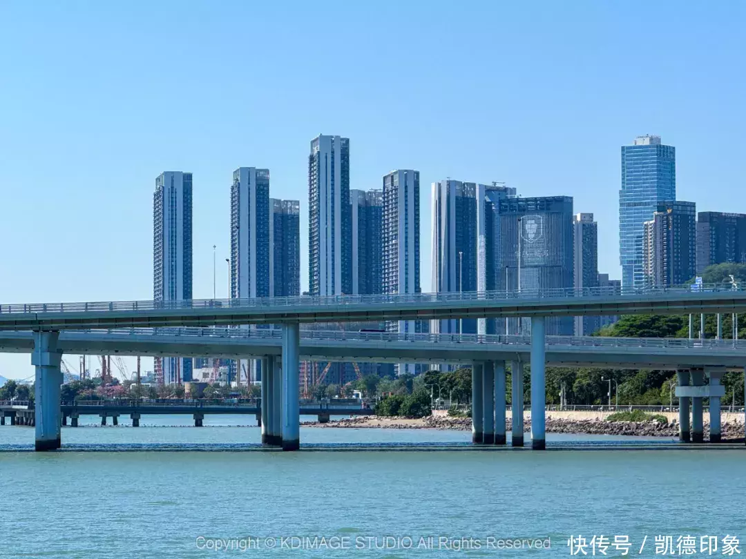 观桥公园的一大亮点就是,水面延伸出去的长廊,伸出了海面很长的距离,一边是观看深圳湾大桥,一边可以看到深圳地标春笋,也很适合海边骑行。